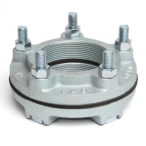 Cast iron flange unions designed for use on bolted tanks. Options include zinc plating, bolts and nuts, gaskets and assembly.