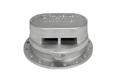 Durable relief valve designed for storage vessels requiring pressure and vacuum venting. An 8″ dead weight cover opens completely, to allow for high venting capacity. Standard settings are 2 oz pressure and 0.4 oz vacuum, with other settings available. The #54 can be ordered with bolting or welding base. Flange hole pattern complies with API bolt circle dimensions. Standard gasket is neoprene, other gasket materials available.