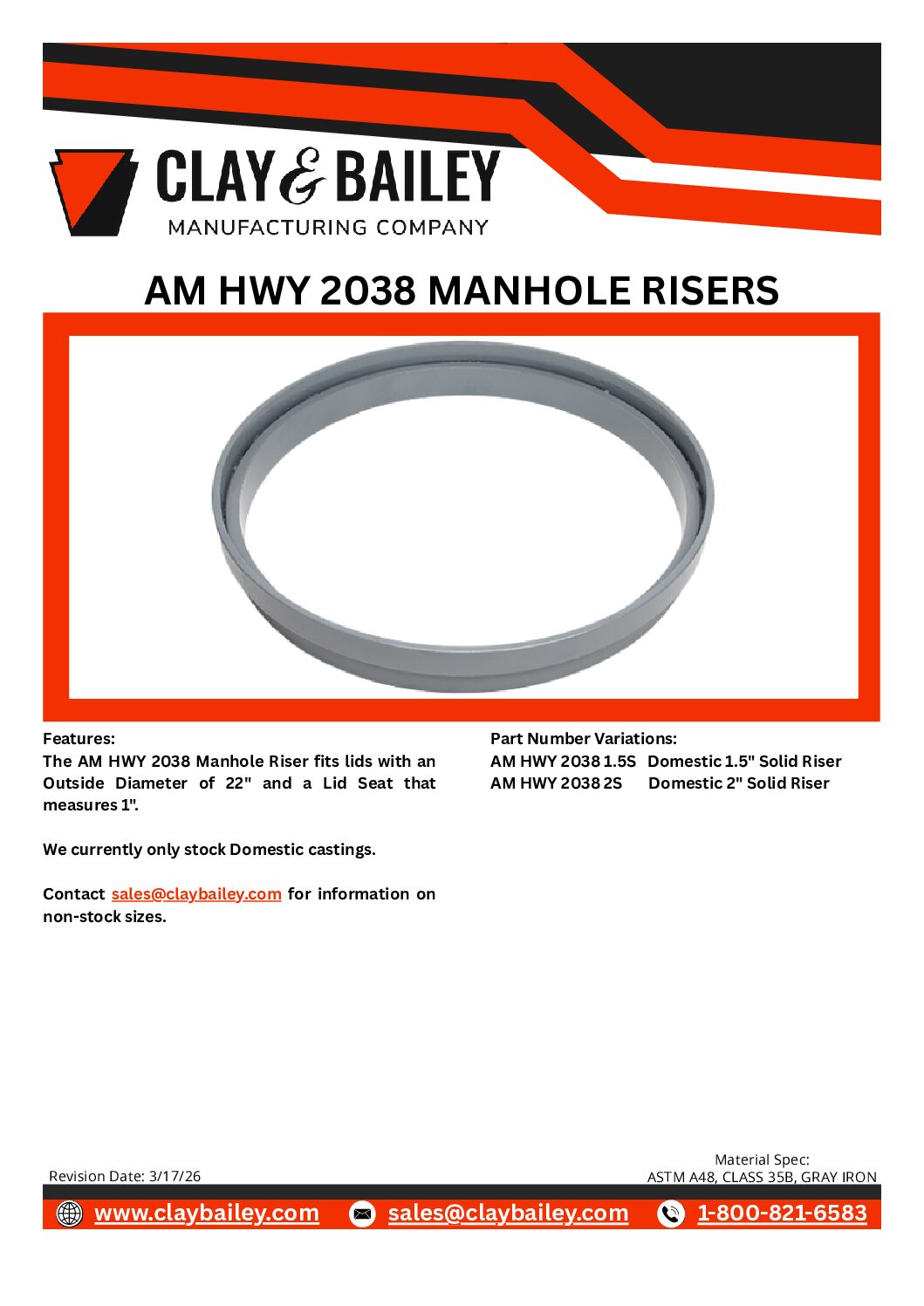 AM HWY 2038 RISER FOR 22″ MANHOLE LID