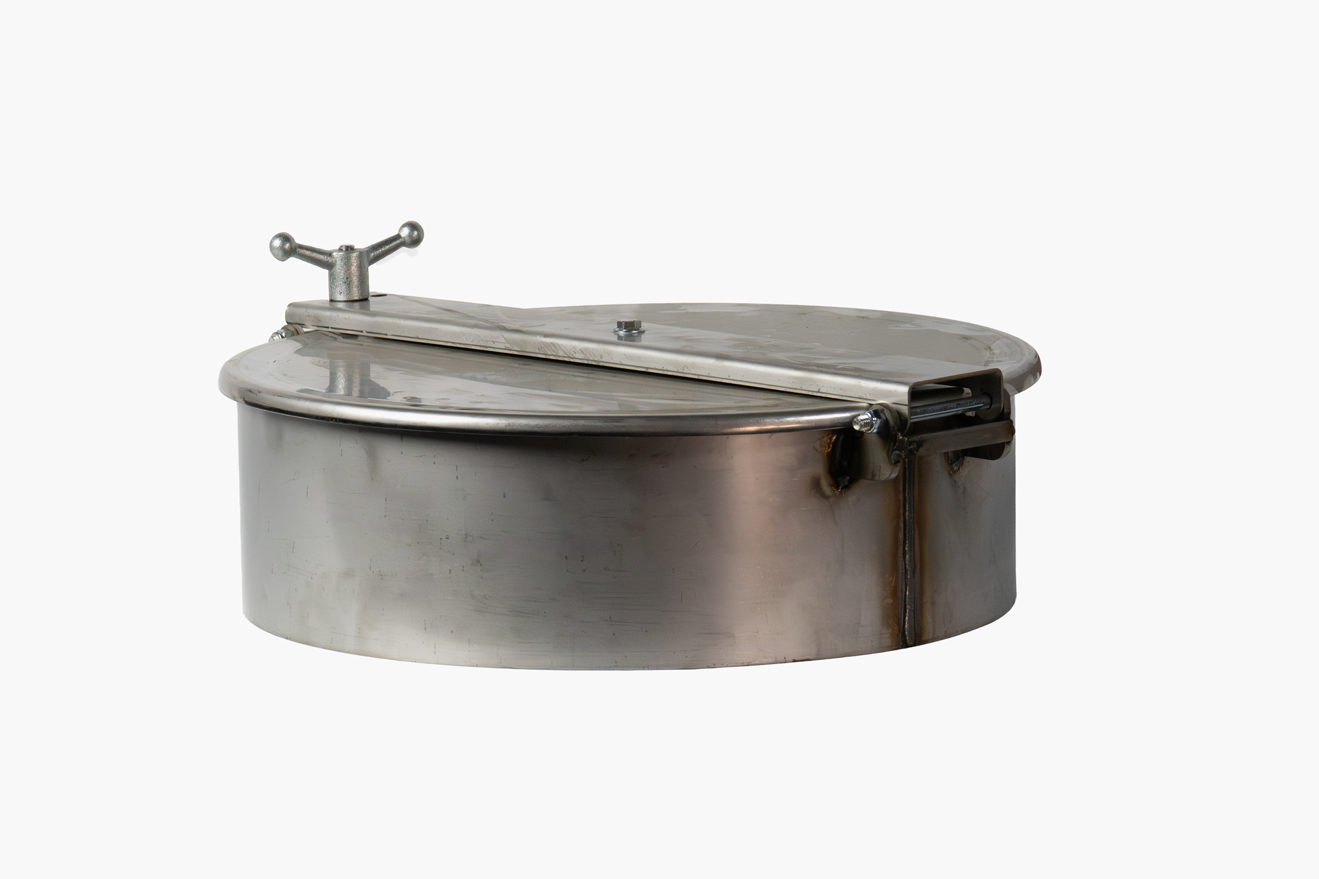 Sturdy manhole allows full opening access. Ideal for non-pressure applications, such as inspection hatches or access to dry storage bins. Strongback hinge and cam design provides strength, allows quick opening and is lockable. Available as a bolt-on or weld-on style. Standard gasket material is Buna-N with other gasket materials available.